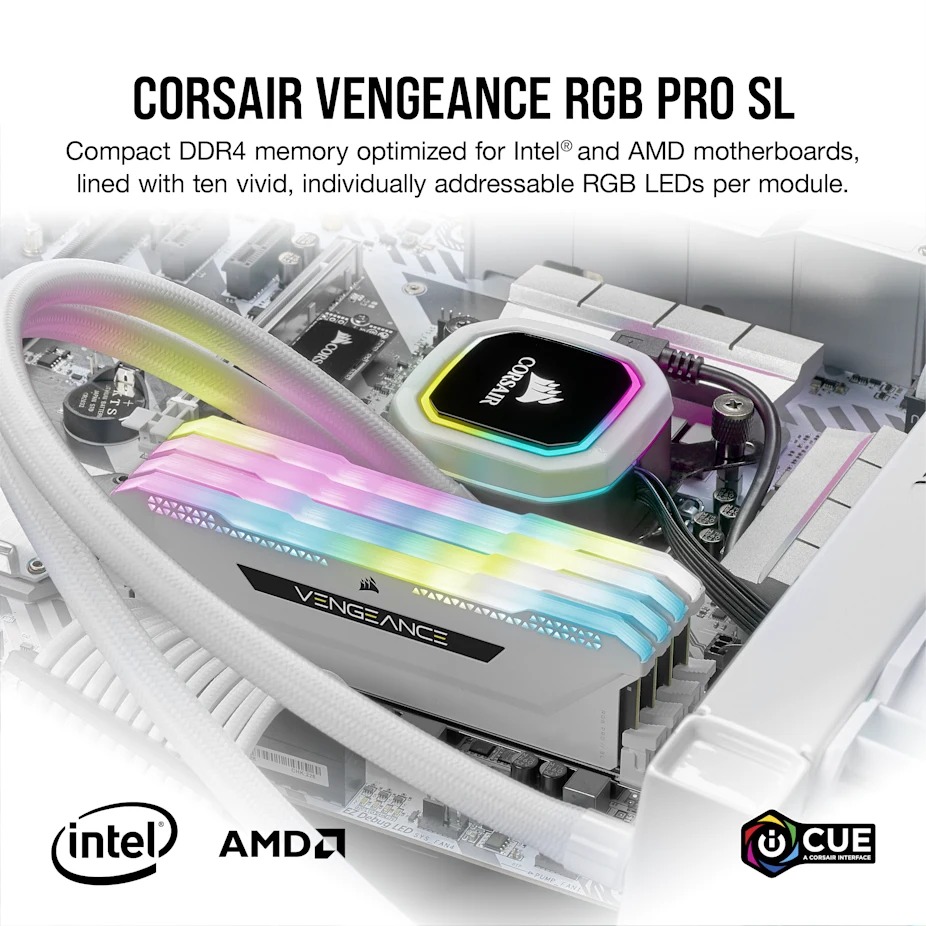 CORSAIR Vengeance RGB Pro SL 3200MHz 16GB Kit CL16 Desktop Memory [Intel & Ryzen] - [White]